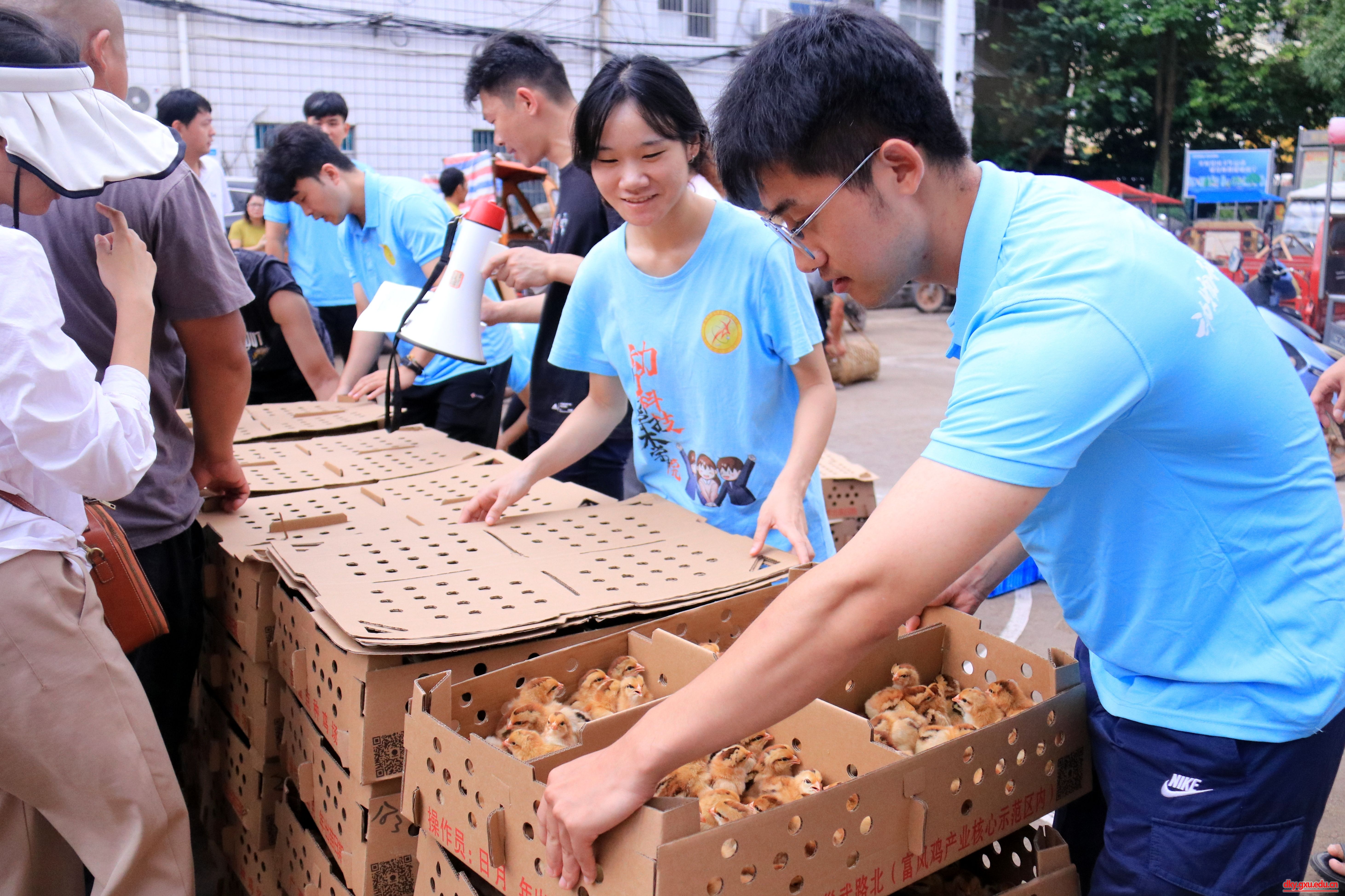 The practice team of teachers and students came to Nalou Town, Yongning District to assist enterprises in distributing more than 10000 chicken seedlings to local farmers. At the event site, members transformed into "technology consultants" and patiently and meticulously explained the knowledge and techniques of scientific breeding to farmers. From feeding management, disease prevention and control to environmental optimization, each link was explained and demonstrated in detail. Farmers have expressed that these practical breeding techniques will help them improve breeding efficiency and increase economic income, and hope to receive regular training in the future.